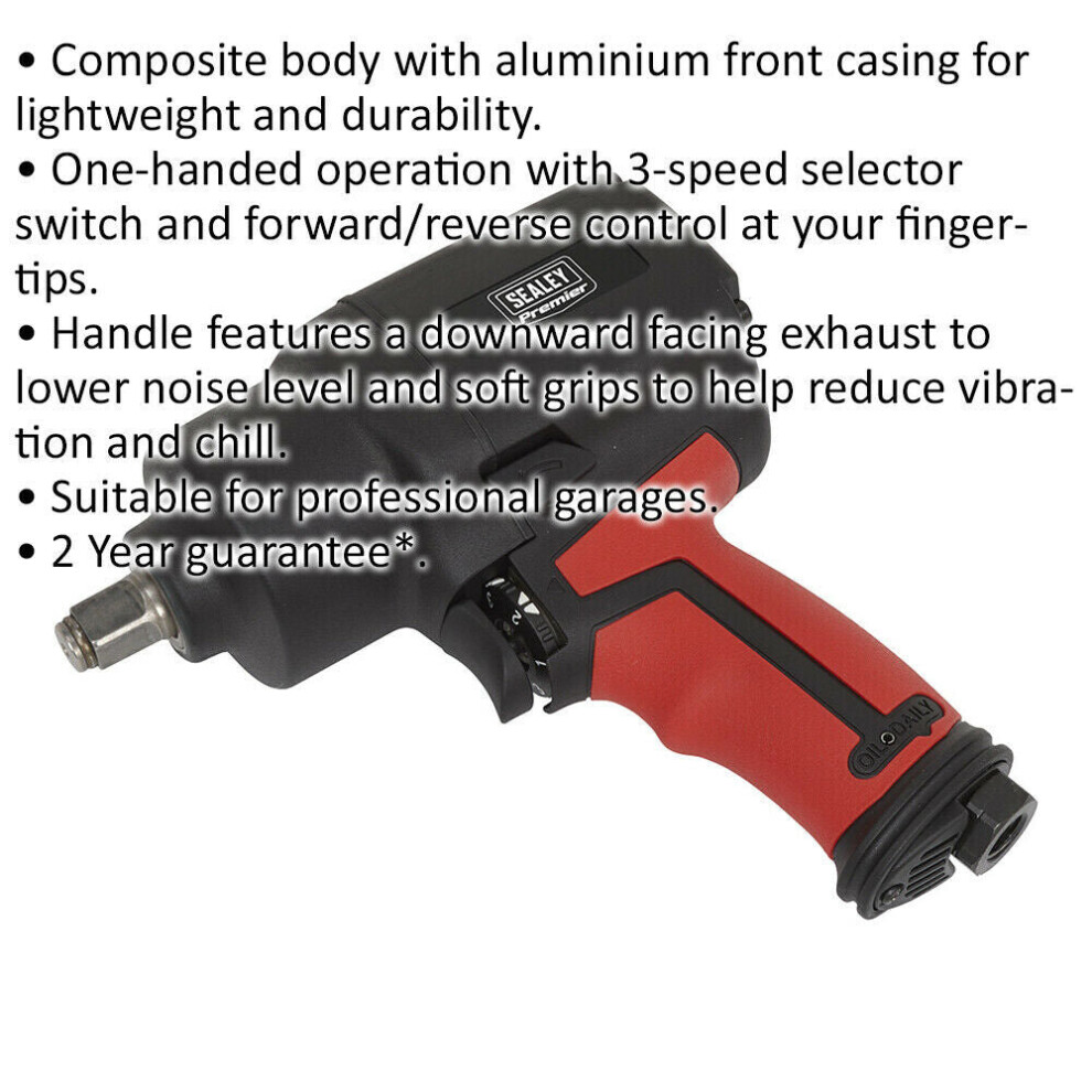 1/2 Inch Sq Drive Air Impact Wrench - Twin Hammer Design - 3-Speed Selector Description